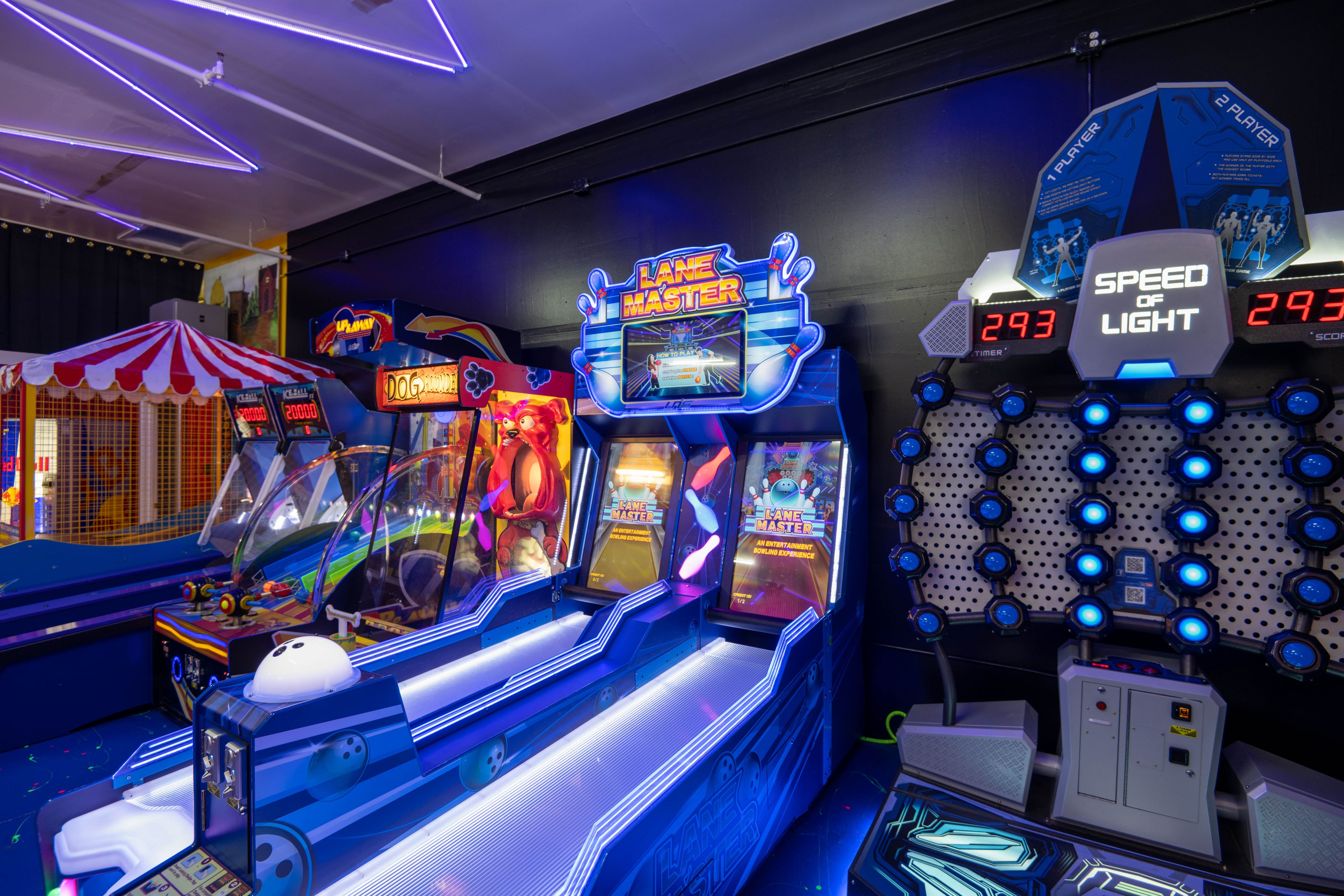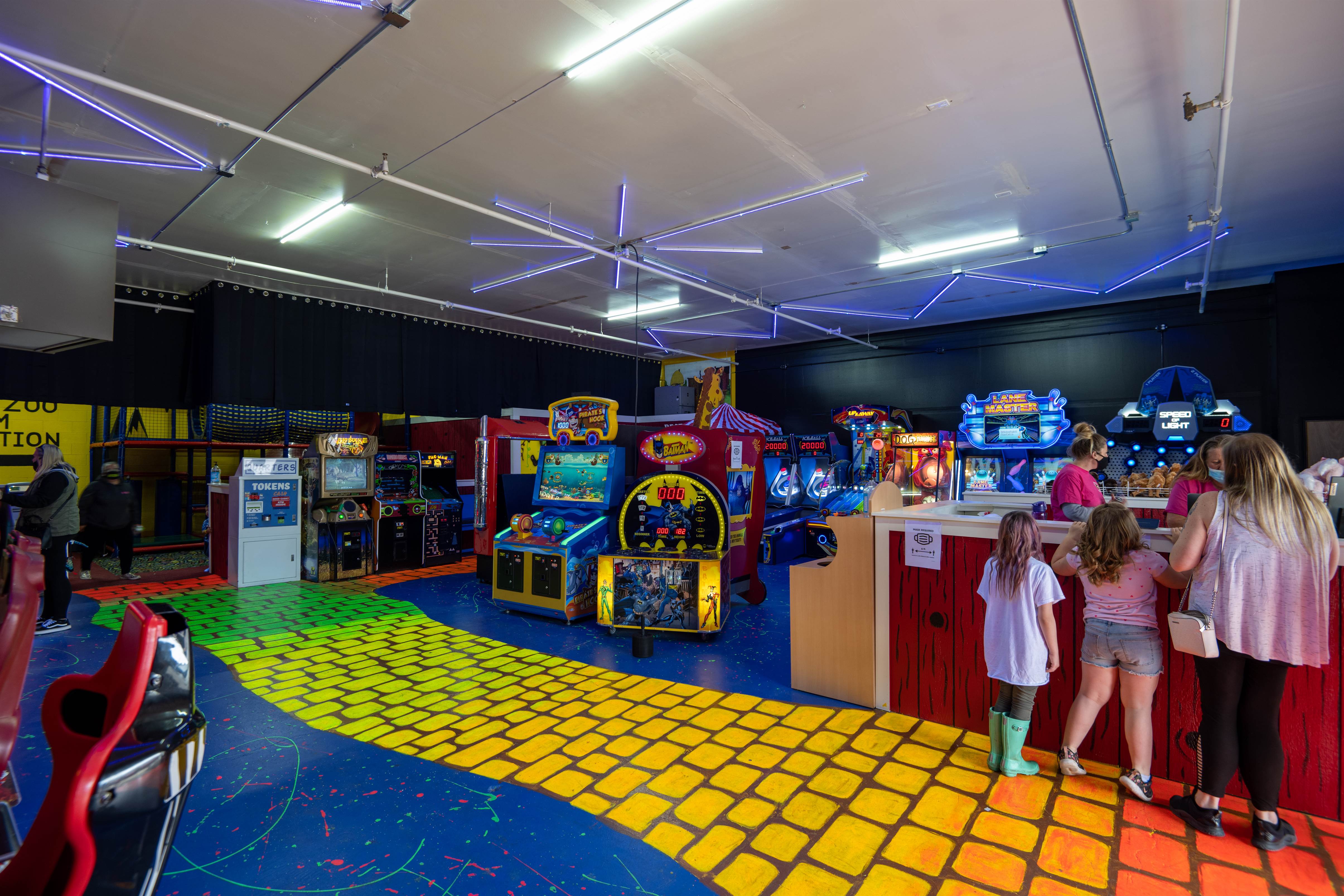 No quarters? No worries! We have done away with the hassle of cash and coins. The games here run off tokens and players can purchase tokens at the front desk, four for a dollar. The arcade also boasts a small play area as well as a Party Barn. Great for birthdays, graduations, or any celebration. This is a room away from the hustle and bustle for gifts, food, cake, and/or to hold your belongings. Party Barn rentals last two hours and include 60 free game play tokens!